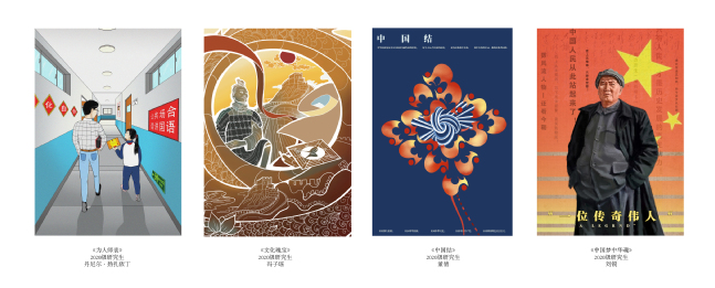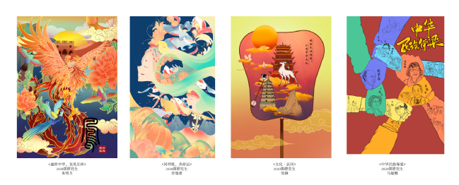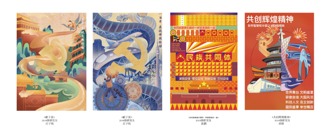 师生们创作作品以巧妙的构思、丰富的艺术形象展示了各民族团结携手,共同迈进小康社会的繁荣景象,运用了写实、夸张、隐喻和象征等艺术语言,在线条与色彩的碰撞中彰显伟大的中华民族文化,是各族人民铸牢中华民族共同体意识的生动写照。作品展现出艺术设计专业学生将热爱祖国、传承文化、团结各族人民的精神融于线条与色彩之间,将各民族团结友爱的景象跃然于纸上,为观者提供了一场设计盛宴。