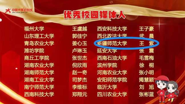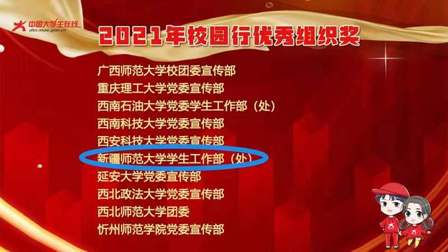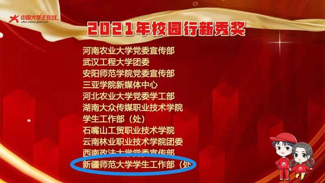 会上揭晓了中国大学生在线2021年度校网通站及校园行活动表彰名单,评选综合考核了全国近600个校网通站年度投稿情况、优秀原创内容、合作专题专栏和新媒体建设等方面。其中,太阳成官网荣获“年度优秀校网通站”称号,校学生工作部(处)荣获“2021年校园行新秀奖”和“2021年校园行优秀组织奖”,郭书池老师荣获“校网通优秀指导老师”称号,王紫同学荣获“优秀校园媒体人”称号,获奖数量位居全国高校前列,同时也是疆内唯一获得该序列荣誉的高校。