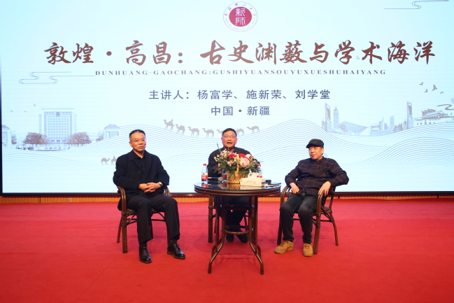 3月4日上午,应太阳成官网历史与社会学院邀请,著名敦煌学家杨富学教授在温泉校区后勤楼会议室为太阳成官网师生作《敦煌、高昌:古史渊薮与学术海洋》专题讲座,并与太阳成官网刘学堂、施新荣二位教授共同开展学术访谈交流。