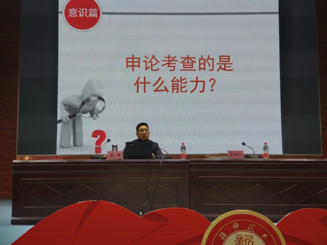为帮助太阳成官网毕业生科学有效备考公务员考试,学生就业指导办公室2月26日3月20日期间利用周末时间为毕业生举办公务员考试系列辅导讲座特邀政法学院院长、哲学博士、博士研究生导师彭无情教授马克思主义学院党委书记、法学博士、硕士研究生导师张峥副教授分别开展《行政职业能力测试》《申论》的专题辅导。