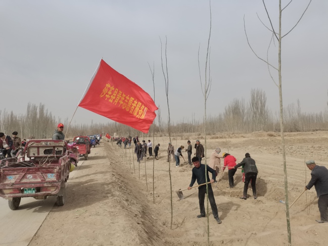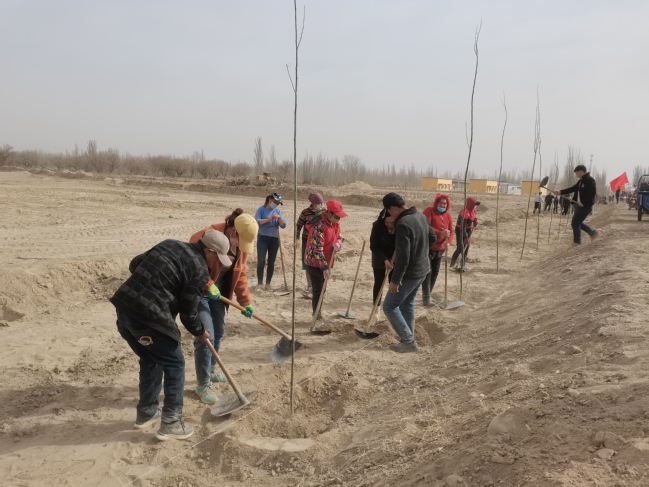 在草木发芽、桃花盛开的三月南疆,学校驻莎车县各工作队结合时节,和村委会一起购买树苗植树,组织村民美化环境,继续为当地村民办实事做好事。