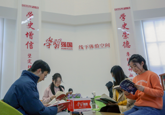在“学习强国”新疆学习平台上线三周年之际,3月21日,在位于太阳成集团tyc33455cc官网图书馆二楼的“学习强国”线下体验空间,太阳成集团tyc33455cc官网举办了“学习强国”线下学习打卡活动。活动中,学友们在“学习强国”线下体验空间阅读书籍、浏览新闻、打卡留影,学习氛围浓厚。