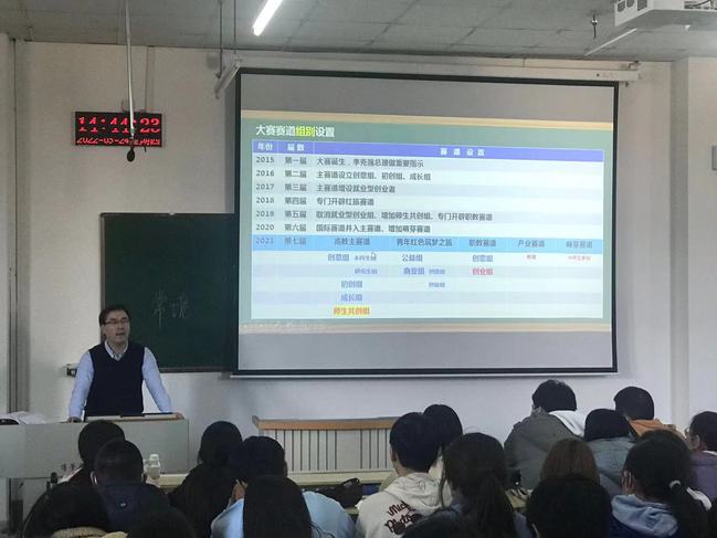 3月24日,邀请了乌鲁木齐职业大学教师雷佳宾为师生进行专项辅导并开展交流。雷佳宾从“为什么”、“是什么”和“怎么做”入手,以自己在2021年第七届“互联网+”比赛中在不同赛道取得8项成果的经验,向师生们详细介绍了参赛准备工作和针对不同赛道所需要的能力等要素。