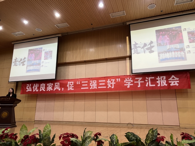 汇报会上13名学生围绕“勤、俭、善、孝、智、诚”六个方面动情讲述了自己家庭成员勤俭持家、爱岗敬业、孝老敬亲、助人为乐、和睦互敬的家风故事,表达了自己要把优良家风带入大学生活、宿舍生活和班级生活之中,为“三强班级”“三好宿舍”建设提供助力的信心。整场汇报会情真意切,精彩的宣讲感染了在场的每一位听众。