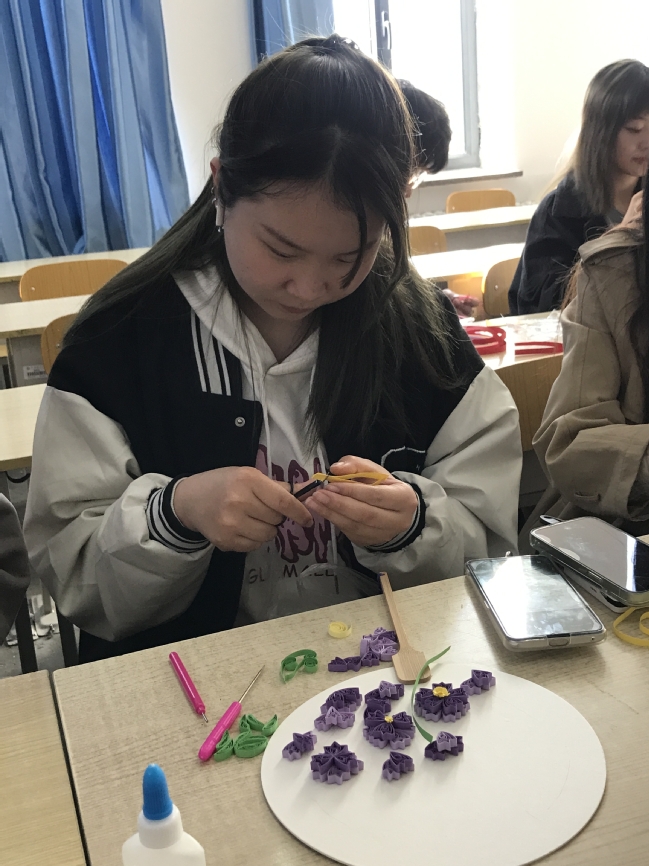 对于非艺术类专业学生而言,纸艺用材简便,制作容易,有较强的装饰效果,在《中国传统纸艺》课程中,学生通过运用剪、刻、折、卷、切等方法表现自己所熟悉或喜欢的形象,抒发情感、体验成功、获得愉悦和提升,感受了纸艺的力量和美,懂得了热爱生活,树立正确的唯物主义世界观、人生观、价值观。通过制作纸艺作品,了解了现代美术教育的多样化,培养额立体思维和操作能力,在春日的校园里,留下了别样的美好。
