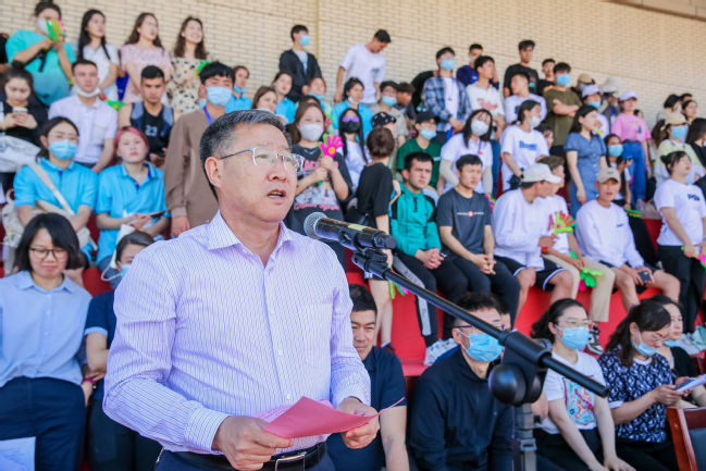 葛国表示,习近平总书记在共青团成立100周年大会上强调,实现中国梦是一场历史接力赛,当代青年要在实现民族复兴的赛道上奋勇争先。站在“两个一百年”奋斗目标的历史交汇点上,我们比任何时候都更需要弘扬体育精神。希望全体新师学子深入践行习近平总书记重要讲话精神,树立远大理想、热爱伟大祖国、担当时代重任,勇于砥砺奋斗、练就过硬本领、锤炼意志品德,不断增强凝聚力、向心力,以更大的热情和信心投入到今后的学习工作中,用顽强的拼搏精神去迎接挑战,不断创造新的佳绩,为体育强国建设作出贡献,为实现中华民族伟大复兴的中国梦而努力奋斗。