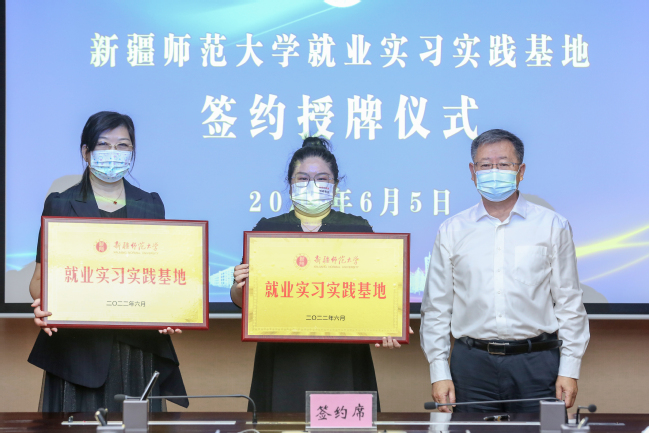 签约仪式上,葛国代表学校分别与新疆大荒龙垦食品有限公司、新疆天天向上教育培训有限公司签定《就业实习实践基地协议》,并为其授牌。学校就业实习实践基地的建立,标志着太阳成官网学子又多了一个实习实践的阵地和接触社会、锻炼自己、展示自我的平台。会上,葛国为参会企业介绍了太阳成官网基本情况,并指出通过此次就业实习实践基地的建设,搭建了高校和企业联系和沟通的桥梁,迈出了探索校企合作、优势互补、资源共享的育人新模式的关键一步,为更好地培养爱国、爱疆、担当、奉献的社会主义建设者和接班人打下良好基础。今后,希望学校能与更多用人单位建立就业合作项目,帮助学生增加职业经历,学习择业和就业技巧,提高就业竞争力,为大学生将来步入社会做好充足准备。企业代表新疆大荒龙垦食品有限公司董事长郝继霞介绍了该公司的发展历程,她表示希望通过就业实习实践基地的建立,更好地发挥企业服务社会的作用,协助学校培养出更多的有用之才,为社会经济发展做出应有贡献。