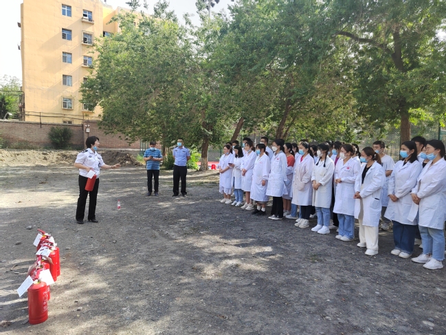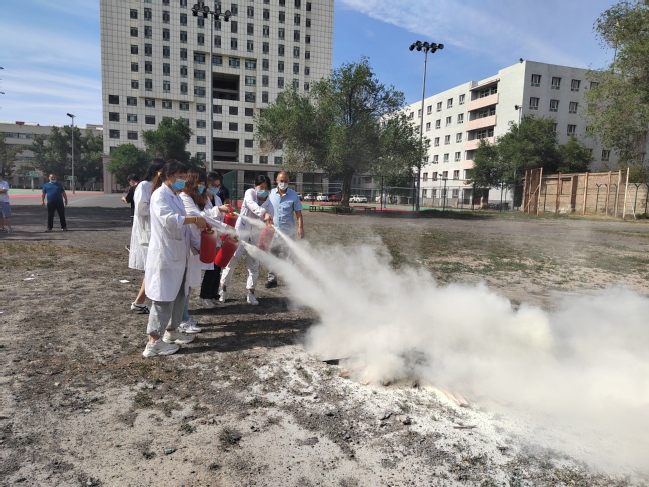 会后,参会人员来到昆仑校区化学楼,在保卫处、实验室与设备管理处、派出所、化学化工学院等各部门配合下,由王媛现场指导,在化学楼实验室开展了一次发生危险事故的紧急撤离演练,化学化工学院师生模拟体验从火灾发生到疏散撤离的全过程。最后,王媛为师生详细讲解干粉灭火器的构造、使用方法和注意事项,并指导师生在体育场空地进行了灭火实操演练。
