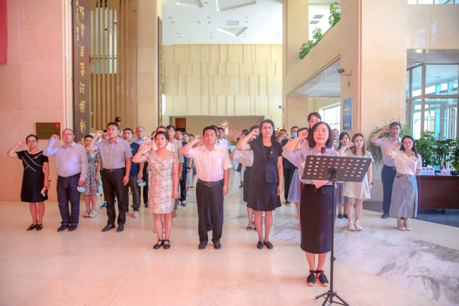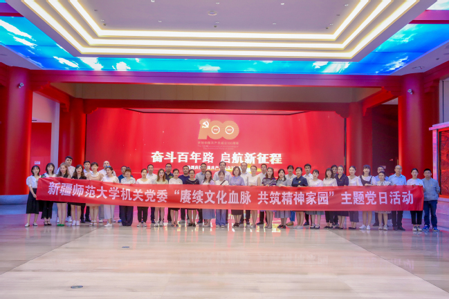 为庆祝中国共产党成立101周年,迎接党的二十大胜利召开,进一步激发基层党组织活力,切实提高党组织的凝聚力和战斗力,增强党员的光荣感和使命感,6月22日下午,由学校机关党委主办、宣传部党支部承办的“赓续文化血脉 共筑精神家园”主题党日活动在温泉校区图书馆举行。校党委常委、纪委书记王志勇,党委常委、副校长帕力旦·吐尔逊,党委常委、副校长季荣,党委常委、组织部部长李建荣以普通党员身份,同机关党委22个党支部的47名党员一同参加了活动。活动由机关党委书记张秀红主持。
