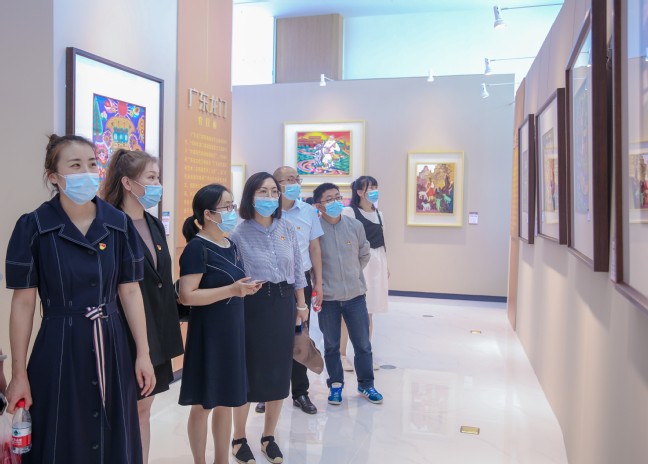 仪式结束后,全体党员乘车前往乌鲁木齐市文化中心参观主题展览。在馆内讲解员的带领下,党员们先后参观了“铸牢中华民族共同体意识:同根同梦 乡土中国——全国农民画联展”“美美与共——‘一带一路’沿线国家版画邀请展”“铸牢中华民族共同体意识 共生共长共融——36位设计师展现新疆文化形象特展”“新疆相册:弘扬伟大建党精神 追寻远去的影像记忆主题摄影展”四个主题展览。