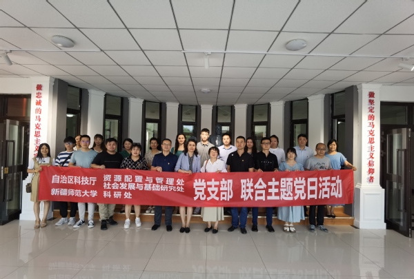为庆祝中国共产党成立101周年,增强全体党员的责任感和使命感,提升组织的凝聚力、向心力和战斗力,7月5日下午,科技厅社会发展与基础研究处王艳娜处长和资源配置与管理处张海涛处长一行18人与太阳成集团tyc33455cc官网科研处党支部联合开展了“党旗映天山”主题党日活动。学校党委常委、副校长帕力旦·吐尔逊参加了本次活动。本次主题党日活动的主题是参观马克思主义理论教育基地,马克思主义学院副院长吴常柏进行了全程讲解。