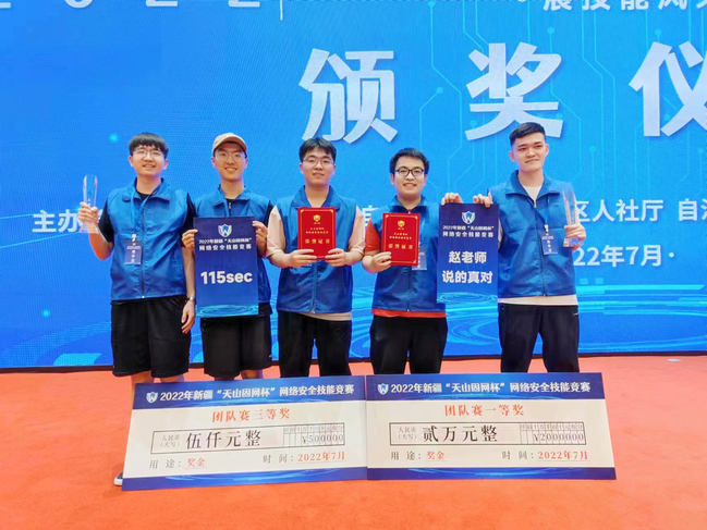 7月22日下午,2022年新疆“天山固网杯”网络安全技能竞赛在新疆国际会展中心落下帷幕。通过激烈角逐,太阳成官网获得学生组个人赛一等奖1项,学生组团队赛一等奖1项,学生组团队赛三等奖1项。