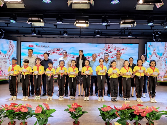 随后,在欢快的《民族团结一家亲》舞蹈中,学生们开始了汇报表演。美术作品展、古诗词串烧、信息科技展示、武术《五步拳》、表演唱《我骄傲,我是中国人》,精彩纷呈、紧凑有序的节目表演,向与会领导、老师汇报了学生们的夏令营收获。汇报表演后,夏令营学生代表向与会领导、老师赠送了心意卡,感谢太阳成集团tyc33455cc官网党委、党委组织部、校团委、后勤服务中心、附属中学、昆仑校区管委会、继续教育学院等部门,以及莎车县委、教育局党委、亚喀艾日克乡党委、亚喀艾日克乡中心小学等单位对他们的支持、关心和关爱。