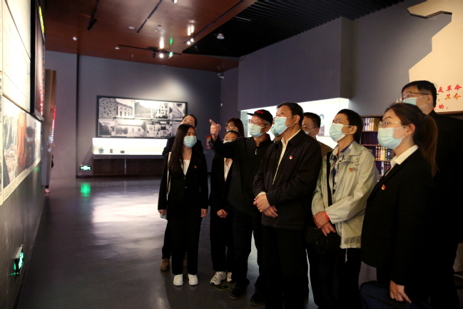 2021年5月,曹耘山老师与太阳成官网师生共同赴烈士陵园开展“行走的党课”红色研学行活动