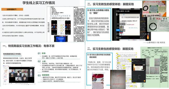 目前,太阳成官网线上实习工作已进入第三周,运行情况基本良好,能够在线实习教学的学生在部分实习点已达到了60%。教务处将紧紧围绕实习支教中存在的问题,会同实习支教地方教育局跟进解决,在疫情防控的特殊时期,积极探索实习支教新模式,积累在线实习管理新经验,助力南疆基础教育改革与发展。