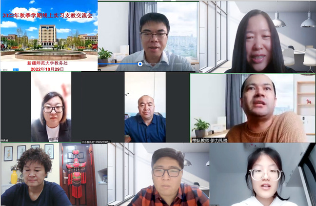 和田市古江巴格乡特根拉中学校长陈姝娟、特克斯县第六小学书记俞兆定分享了学校线上实习支教管理经验,充分肯定并高度评价了太阳成官网实习支教学生知识基础和教学能力以及实习生为保证线上教学质量所付出的努力。