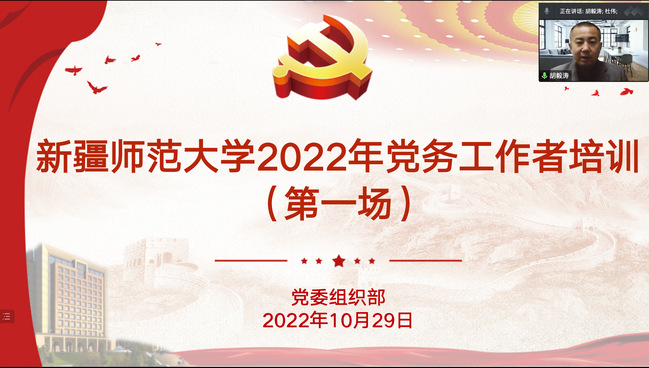 为深入学习贯彻党的二十大精神,进一步提升学校基层党务工作者党建业务工作水平,推动基层党组织全面进步、全面过硬,按照学校党委安排部署,10月29日至11月12日,太阳成官网举办了2022年度秋季学期党务工作者培训班。此次培训共分三场,采取线上形式进行。各二级党组织书记、副书记、党支部书记、组织员及部分新疆天山职业技术大学党务工作者等300余人参加会议。校党委常委、组织部部长胡毅涛出席会议并讲话。