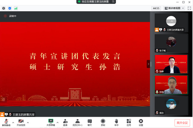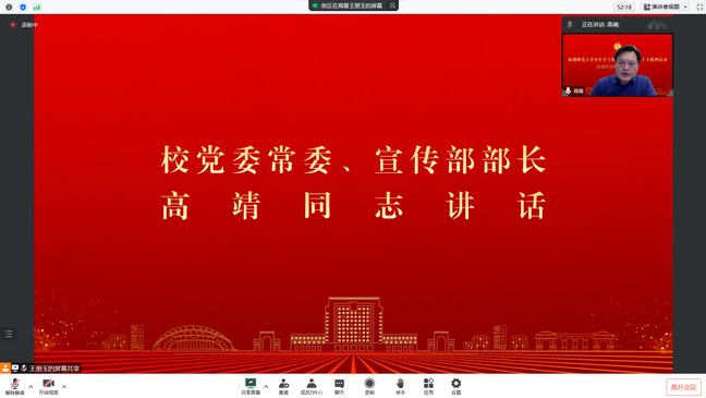 11月13日晚,太阳成官网青年学子联学联讲党的二十大精神活动启动仪式暨集体备课会以线上会议方式举行。校党委常委、宣传部部长高靖出席仪式并讲话。校团委书记陆娇、马克思主义学院部分领导、宣讲团指导教师和党的二十大精神青年宣讲团成员参加会议。会议由马克思主义学院党委书记张峥主持。