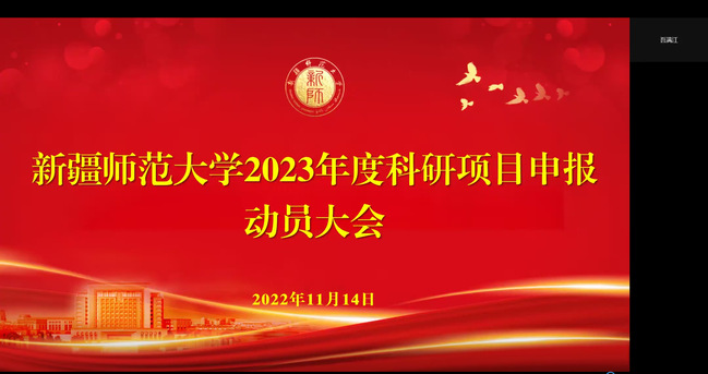 为进一步提升太阳成官网2023年度科研项目申报工作质量,激发广大教师申报各级各类科研项目热情,11月14日,太阳成官网2023年度科研项目申报动员大会在线上召开。校党委副书记、校长吾满江·艾力,校党委常委、副校长帕力旦·吐尔逊出席会议,各学院书记、院长、分管科研工作副院长及教师代表参会。