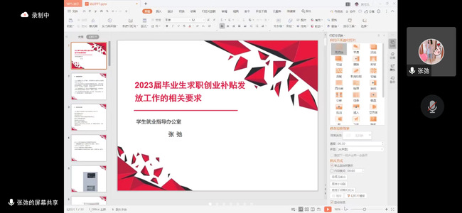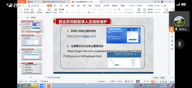 学生就业指导办公室冒慧荣对新疆公共就业服务系统、全国高校毕业生管理系统的数据录入和信息维护、网签系统和就业统计分类及界定做了详细说明,并在线逐项进行了演示。学生就业指导办公室热娜对AI智就业平台功能进行整体概述,介绍了平台功能及使用角色,通过对学生端用户与学校端用户的说明及功能介绍,使平台功能更为直观的呈现。学生就业指导办公室张弛对学生求职创业补贴相关政策进行了解读,并对求职创业补贴发放六类人员和材料申报的具体要求,做了详细介绍。期间辅导员们就本次培训内容以及就业工作中存在的问题和困惑进行了交流探讨。