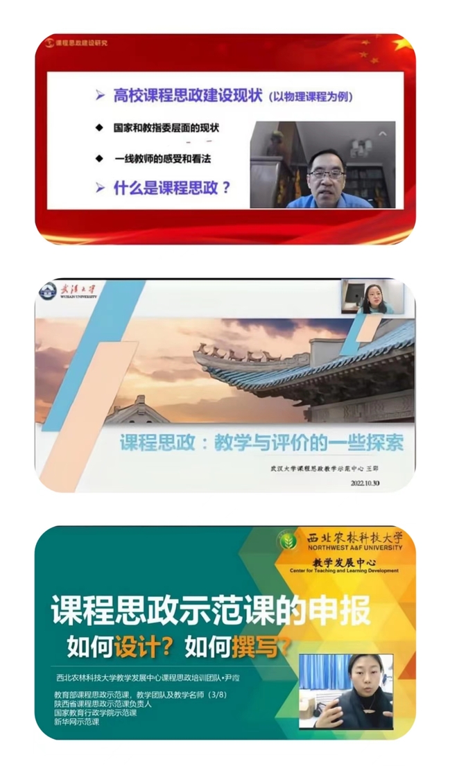 香柏树教师平台特邀清华大学王青、武汉大学王郢、西北农林科技大学尹霞三位教授作2022年新形势下课程思政建设暨课程思政示范课打造工作专题研讨会线上分享