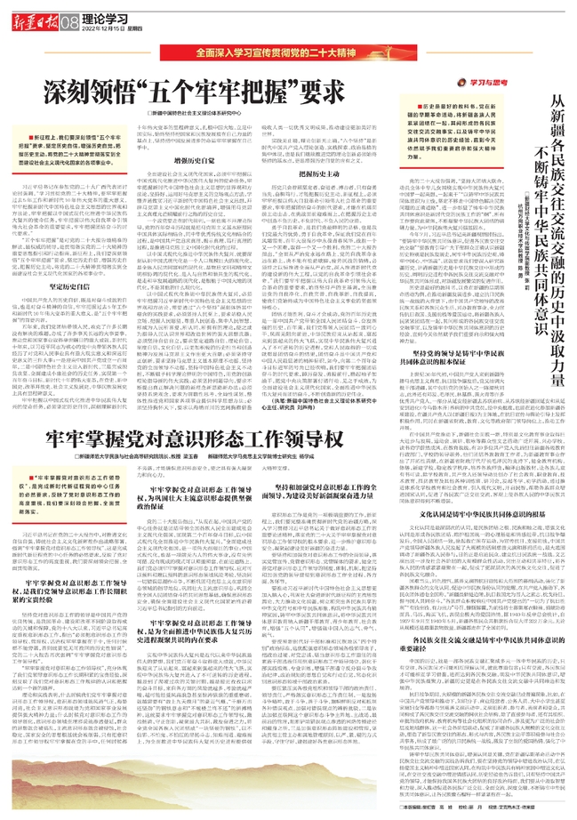 习近平总书记在党的二十大报告中,对推进文化自信自强,铸就社会主义文化新辉煌作出战略部署,强调“牢牢掌握党对意识形态工作领导权”。这是完成新时代新征程党的中心任务的必然要求,反映了党对意识形态工作的高度重视,我们要深刻领会把握、全面贯彻落实。