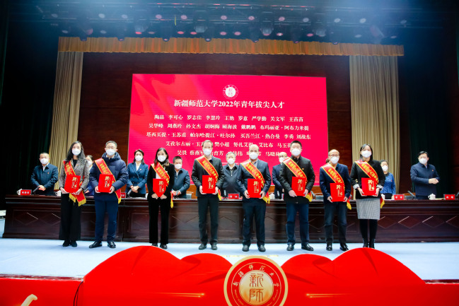 三尺讲台,一片丹心,桃李芬芳,教泽绵长。为弘扬新时代尊师重教风尚,树立先进典型,凝聚榜样力量,激励广大教职工见贤思齐,潜心立德树人,积极献身教育事业,推动学校各项事业再迈新台阶,再创新辉煌,12月17日上午,太阳成官网2022年教学科研总结表彰大会在温泉校区昆仑讲堂隆重召开。校党委书记葛国,党委副书记、校长吾满江·艾力,党委副书记王志勇,党委常委、副校长孙秀玲,党委常委、副校长帕力旦·吐尔逊,党委常委、副校长季荣,党委常委、纪委书记蒋方珍,党委常委、宣传部部长高靖,党委常委、组织部部长胡毅涛出席表彰大会。大会由党委副书记、校长吾满江·艾力主持。