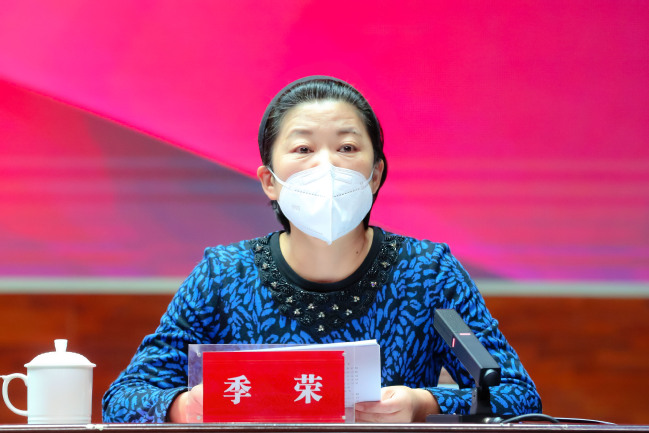 校党委常委、副校长季荣向大会作2022年度本科教学工作总结报告