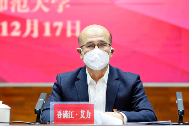 葛国指出,回顾过去一年学校事业取得的各项喜人成绩,离不开每一位教师的努力和付出。面对疫情防控、线上教学等重重难题和阻碍,广大教师勇于担当、甘于奉献,用行动诠释了师大教师潜心育人、爱岗敬业、服务社会的高尚情怀。教师强则师大强,学校的发展必须坚持以广大教师为中心,紧紧依靠广大教师,服务广大教师,真正形成尊重教师、信任教师、支持教师的氛围,为广大教师创造更加安心、舒心的从教环境,才能扎实推进教育事业取得新突破、铸就新辉煌。