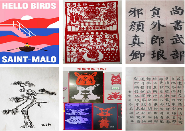 《电脑美术》课程深受学生的喜爱,运用电脑绘画不但可以节省大量的时间,还能画出许多用手绘方法所不能达到的艺术效果。《中国书法文化与艺术实践》课程以弘扬中华优秀文化为宗旨,教学结构分训练基本技法和鉴赏历史经典作品两部分,学生不仅掌握了书写的工具、笔法、章法以及读贴、临帖等基本功,而且也达到了书法在审美认知上的思想飞跃,具备了一定书写书法基本笔法的能力。《当插画遇到中国风》课程回顾了中外插画史的发展,赏析了各个国家的多种插画绘画风格,深刻剖析了中国风的插画艺术作品。同时授课教师带领学生从中国传统艺术里寻找插画视觉语言,通过教师的课堂直播示范,学生跟做了大量的练习,每位学生都高质量的完成了课堂练习和作业。《中国传统纸艺》课程,主要以“十二生肖”剪纸为主题讲述中华优秀传统文化,同时锻炼了学生对形象的概括能力、立体思维能力和表现能力。学生运用剪、刻等方法表现了十二生肖中各种动物的形象,培养了一定的耐心和毅力,对中国传统剪纸艺术有了一定的认识。