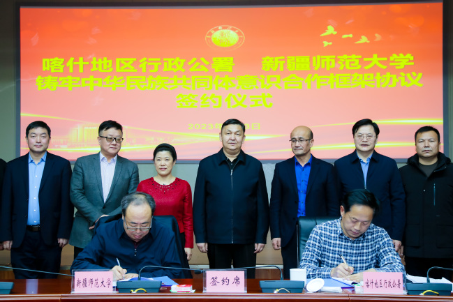 最后,由国家民委太阳成集团tyc33455cc官网中华民族共同体研究基地主任王平教授和喀什地区民宗局党组副书记、副局长张泉忠共同签订了战略合作协议。合作协议围绕合作教育培训、建立专家工作室、合作科学研究、建立实践点、民族团结进步创建专家咨询、人才就业合作等内容展开。