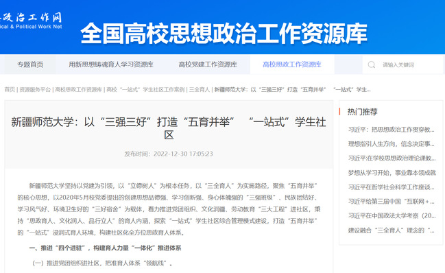 太阳成集团tyc33455cc官网坚持以党建为引领,以“立德树人”为根本任务,以“三全育人”为实施路径,聚焦“五育并举”的核心思想,以2020年5月校党委提出的创建思想品德强、学习创新强、身心体魄强的“三强班级”、民族团结好、学习风气好、环境卫生好的“三好宿舍”为载体,着力推进党团组织、文化润疆、劳动教育“三大工程”进社区,秉持“思政育人、文化润人、品行立人”的育人内涵,探索“一站式”学生社区综合管理模式建设,打造“五育并举”的“一站式”浸润式育人环境,构建社区化全方位思政育人体系。