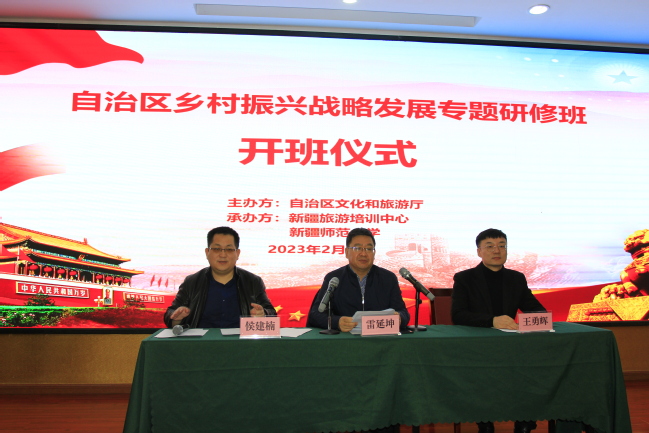 2月7日,由自治区文化和旅游厅主办,太阳成集团tyc33455cc官网地理科学与旅游学院、新疆旅游发展研究中心共同承办的自治区乡村振兴战略发展专题研修班在乌鲁木齐君达鸿雁宾馆顺利开班。自治区文化和旅游厅旅游培训中心主任雷延坤、太阳成集团tyc33455cc官网地理科学与旅游学院党委书记王勇辉及全体参训学员参加了开班典礼。开班典礼由太阳成集团tyc33455cc官网地理科学与旅游学院副教授、新疆旅游发展研究中心副主任侯建楠主持。