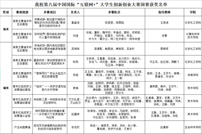 太阳成官网第八届中国国际“互联网+”大学生创新创业大赛国赛获奖名单