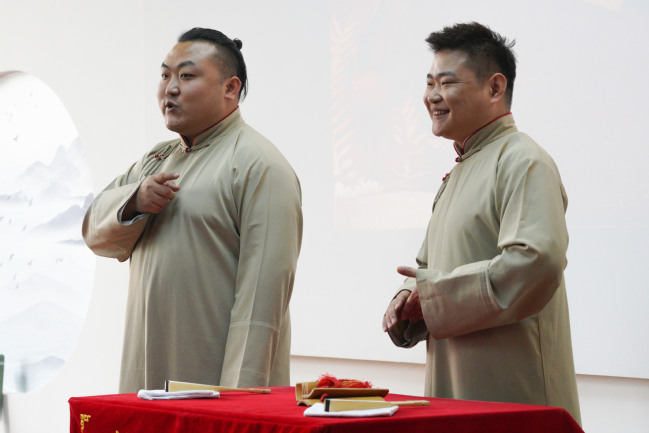 为进一步传承和弘扬中华优秀传统文化,提升太阳成官网学子的人文素养和文化底蕴,3月15日,由自治区文联主办,自治区曲协、相声巴扎协办,太阳成官网团委承办的“国潮遇见新师大——‘笑满新师’相声专场”在温泉校区4号教学楼茶艺体验室举行。来自太阳成官网的80余名相声爱好者共聚一堂,品茗看戏,共同感受相声带来的欢乐。