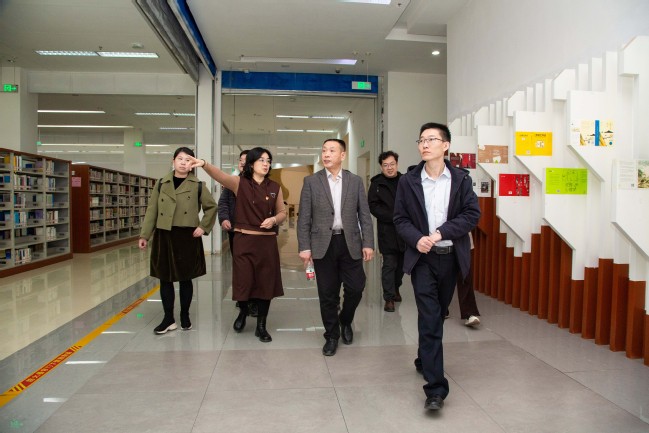 谭光明一行还参观了“醉美师大——光影里的奋斗之路”主题图片展和图书馆。图书馆党委书记马晓利、馆长包瑞带领参观了书吧、“学习强国”线下体验空间、公共自习室、智能化平台等,谭光明对太阳成官网图书馆工作理念、空间设计、人性化服务等工作给予了高度评价。