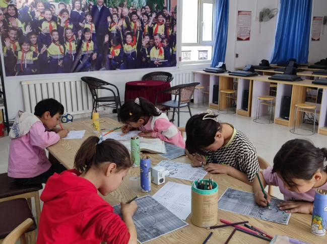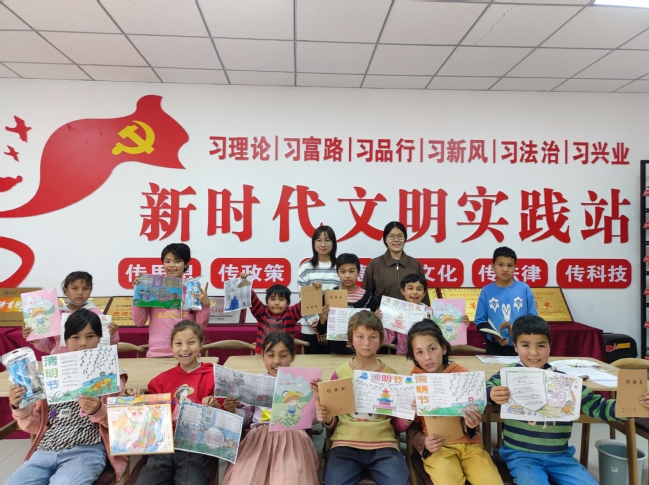通过前期的准备,比赛现场紧张而有序,大家拿起手中的笔将学到的诗词写在纸上,在“清明时节雨纷纷,路上行人欲断魂”“草长莺飞二月天,拂堤杨柳醉春烟”等脍炙人口的古诗词中感受清明诗词文化的熏陶,把对传统文化的热爱之情化作笔尖一撇一捺的汉字之美,并用彩笔涂抹自己心中清明春景的颜色,让优秀诗词浸润童心。最后,根据每个孩子展示的作品基本功和涂绘的色彩,评选出一等奖1名,二等奖2名,三等奖3名,优秀奖5名。孩子们对工作队为他们选购的中国地图拼图、跳绳、折纸、作业本等奖品非常满意,无不欢欣鼓舞。