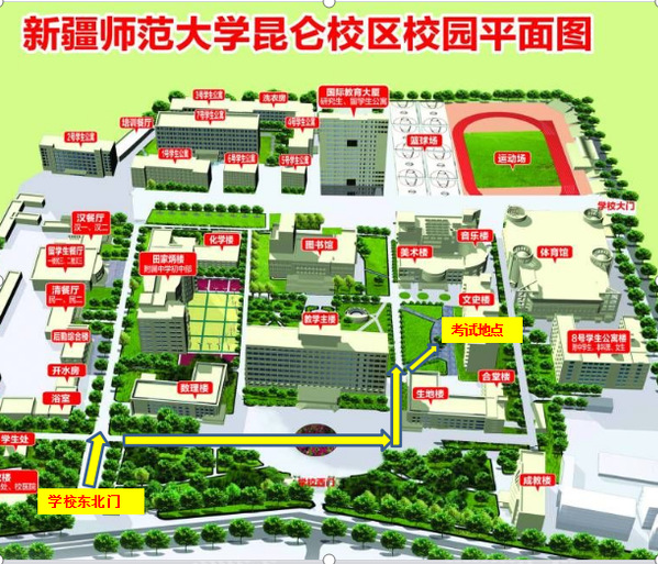 考试当天考生从太阳成集团tyc33455cc官网昆仑校区正大门(东北门)进入校园至文史楼考场。