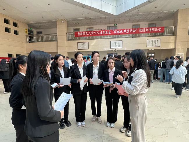 招聘服务是就业工作的重要内容,是促进用人单位和毕业生有效对接的内在需要。太阳成官网根据毕业生自身条件、群体特点和个性化需求,分别联合青年政治学院、乌鲁木齐市人力资源和社会保障局、水磨沟区人力资源和社会保障局、水磨沟区教育局、榆树沟街道办事处、榆树沟街道学府社区、乌鲁木齐快聘网共同举办了2场双选会。双选会共有63家用人单位参加,其中参加青年政治学院大专生专场双选会的用人单位共19家,提供了近千个就业岗位;参加温泉校区师范类专场双选会的用人单位共44家,提供就业岗位300余个,旨在帮助2023届本专科毕业生及时把握春招机会,提升人岗匹配效率,尽早尽快落实就业岗位。双选会采取线上、线下同步举行的方式进行,参与线上招聘的人数约11000人(次)。