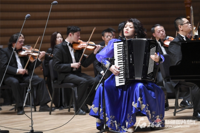 5月4日,乌鲁木齐文化中心音乐厅,手风琴独奏《乌鲁木齐的天空》现场。