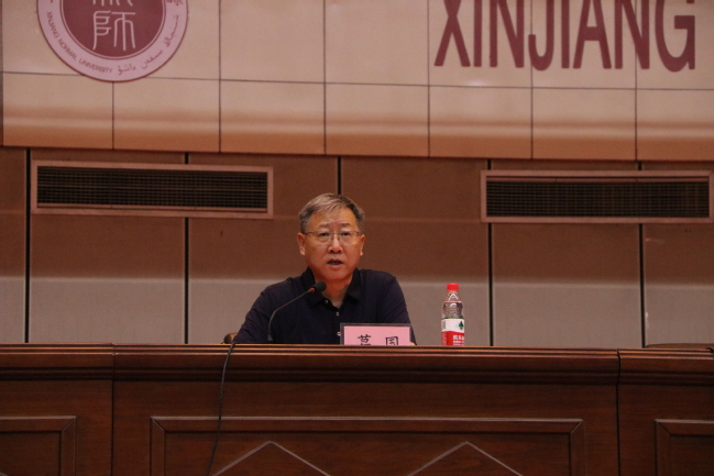 在表彰环节,校党委书记葛国、党委副书记王志勇、党委副书记刘俊以及出席会议的领导分别对取得优异成绩的运动员进行表彰颁奖,教练员代表阿布都克依木·阿布都热合曼、运动员代表张乐发言。