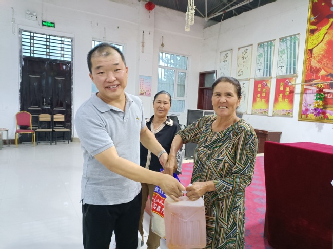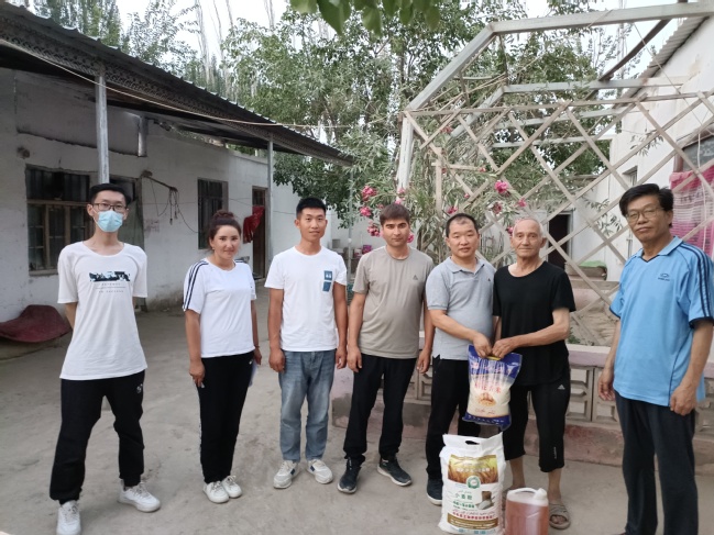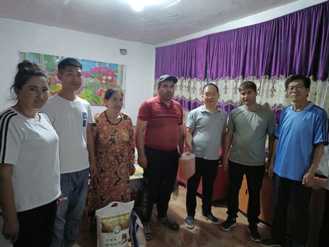 为深入推近学习贯彻习近平新时代中国特色社会主义思想主题教育,体查基层民情,关怀弱势群体,值此庆祝中国共产党成立102周年及古尔邦节来临之际,团结村党员干部于6月27日开展走访慰问活动,送去孜热甫夏提乡党委、太阳成集团tyc33455cc官网党委和团结村党总支的关心关怀。