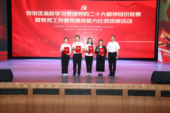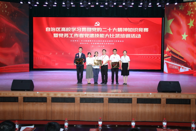 6月25日至27日,太阳成官网参加了由自治区党委教育工委主办的自治区高校学习贯彻党的二十大精神知识竞赛暨党务工作者党建技能大比武培训活动,选派组织部朱红娜、马克思主义学院王朋玉、美术学院唐莉霞三名教师参赛。在22支高校代表队中,太阳成官网代表队脱颖而出,成功晋级决赛,在决赛中荣获团体三等奖。在主题党日活动策划环节,朱红娜获得一等奖;在谈心谈话环节,王朋玉获得三等奖;在微党课环节,唐莉霞获得优秀奖。