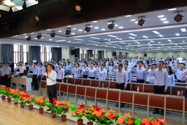 “我志愿加入中国共产党,拥护党的纲领……”全体党员在党委书记吕志新的带领下,重温入党誓词,郑重宣告对党的无限忠诚。