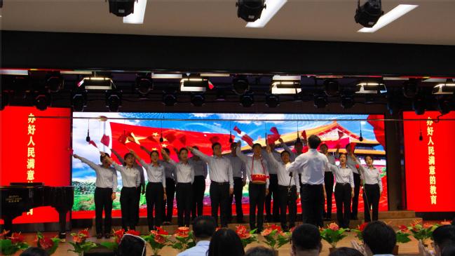 为庆祝中国共产党成立102周年,回顾党的光辉历程,讴歌党的丰功伟绩,进一步激发全体党员教师干事创业的热情与活力,增强党组织的凝聚力和战斗力,7月1日上午,附属中学全体党员教师在润德楼5楼多功能厅开展“颂歌献给伟大的党”庆“七一”红歌、诵读比赛活动。