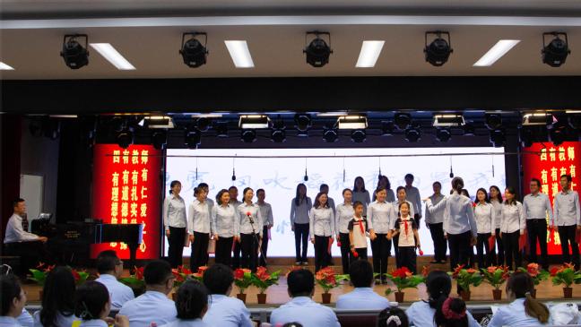 活动在嘹亮的国歌声中拉开序幕。《没有共产党就没有新中国》 《毛委员和我们在一起》《歌唱祖国》《我们走在大路上》等一首首脍炙人口的红歌合唱激昂嘹亮、旋律铿锵,带领党员教师们一起重温那段难忘的革命岁月。演出现场气氛热烈、精彩纷呈,各支部身着统一服装,以整齐的队列、饱满的激情、良好的精神面貌和高亢激昂的歌声,激情演绎了一首首耳熟能详的革命歌曲,深情抒发了爱党爱国的壮志豪情,充分展示了广大党员教师干事创业的奋斗热情和团结向上的精神风貌。一曲曲振奋人心的经典红歌轮番上演,赢得现场观众阵阵掌声。