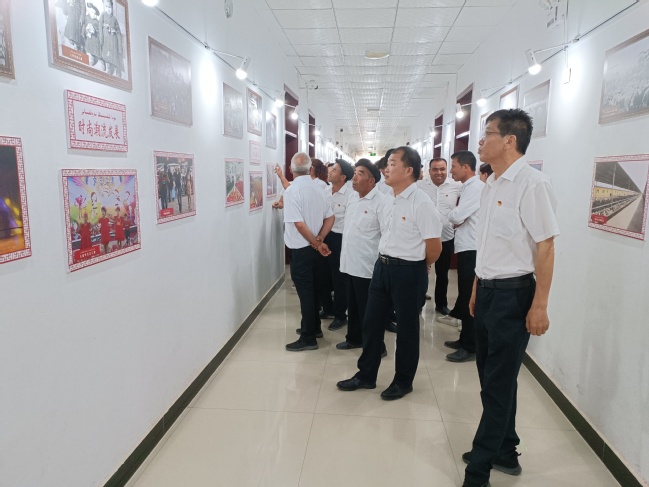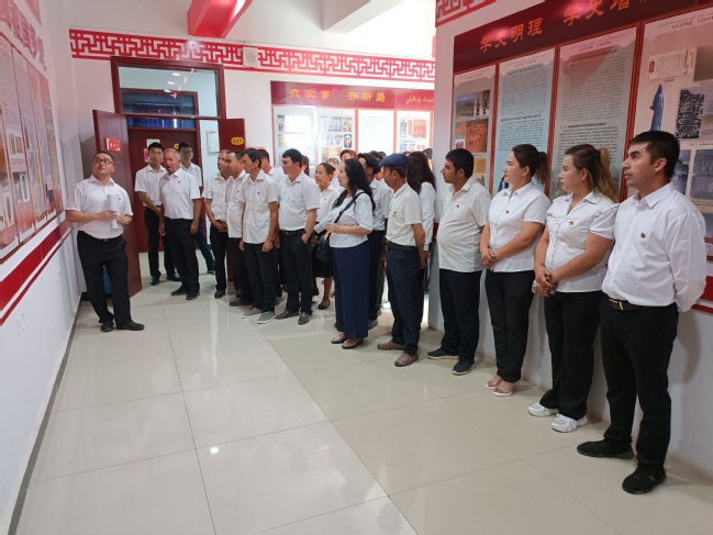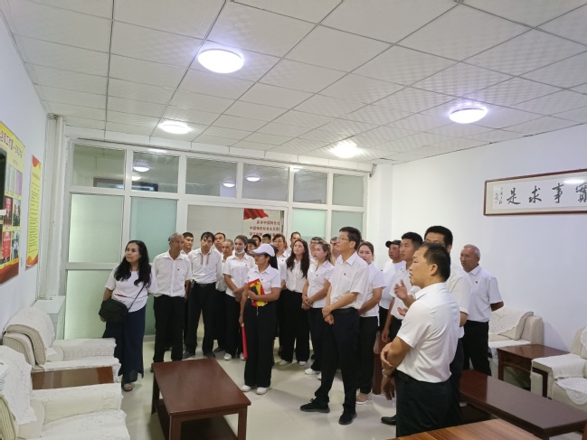 工作队第一书记、队长岳敦福带领28名党员干部前往莎车县委党校,通过重温入党誓词、参观党群服务实景模拟室、孙秀玲“名师”工作室莎车工作站、群众工作实景模拟室、新疆“四史”馆等形式,党员们深刻感受到了莎车县党员干部在党中央和自治区党委的领导下,为美好生活而接续奋斗、开拓进取的创新精神,以及莎车县人民勤劳勇敢、踏实质朴的劳动精神。