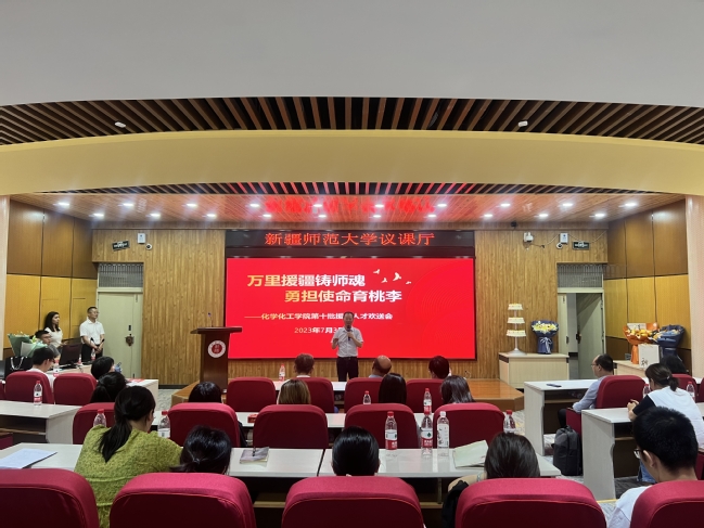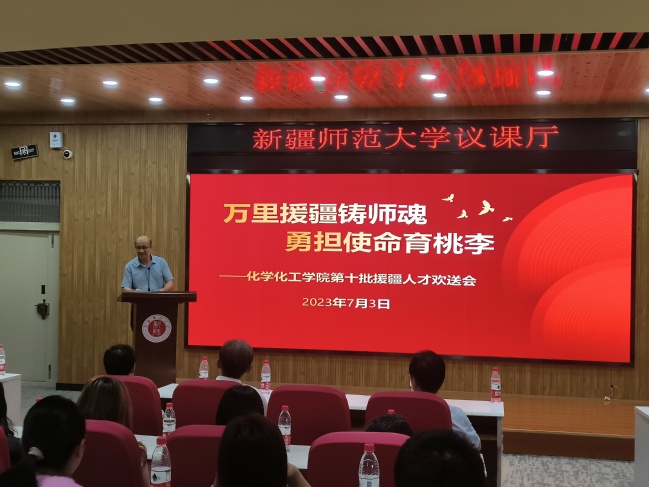 一次援疆路,一生援疆情。两位援疆干部先后发表感言,罗时玮副院长讲到:“援疆三年,我有幸参与了太阳成集团tyc33455cc官网跨越式的发展过程,亲眼见证了太阳成集团tyc33455cc官网日新月异的变化。祝愿太阳成集团tyc33455cc官网、化学化工学院越来越好。”崔现宝副院长虽然援疆时间不长,但与师生结下了深厚的友谊,他说:“今后太阳成集团tyc33455cc官网和化学化工学院有需要,我将继续作为师大的校友持续发挥桥梁作用!”