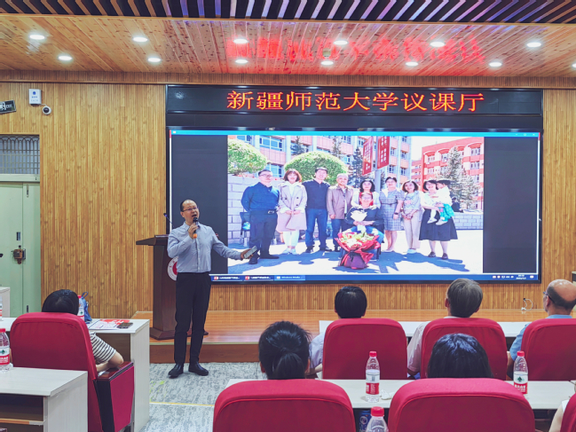 会上,学院师生以歌声、视频祝福等方式向援疆干部罗时玮老师、崔现宝老师表达了浓浓感激之情。研究生代表通过诗歌朗诵《千里援疆路,浓浓援疆情》,深情表达了对于援疆干部为学院发展倾注的心血、付出的辛劳、贡献的才智的敬意和谢意。吾满江·艾力为援疆干部赠送了纪念礼物,副院长阿布都热西提·阿布力克木有、李桂新为援疆干部献花。