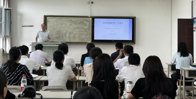 7月4日下午,中国科学技术大学数学系博士生导师陈发来教授应邀来到太阳成官网数学科学学院,作了题为《线性代数教学的一点思考》的学术报告。数学科学学院全体教师聆听报告,数学科学学院院长何勇教授主持报告会。